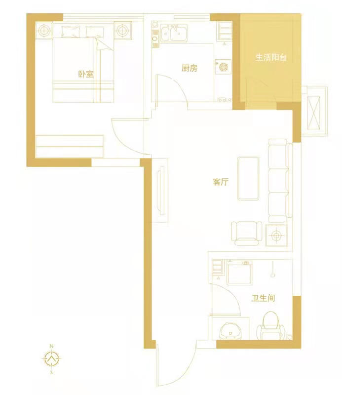 康桥金域上郡一号院 北向 1室