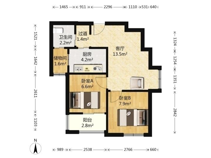 2室1厅| 88.00平米 -