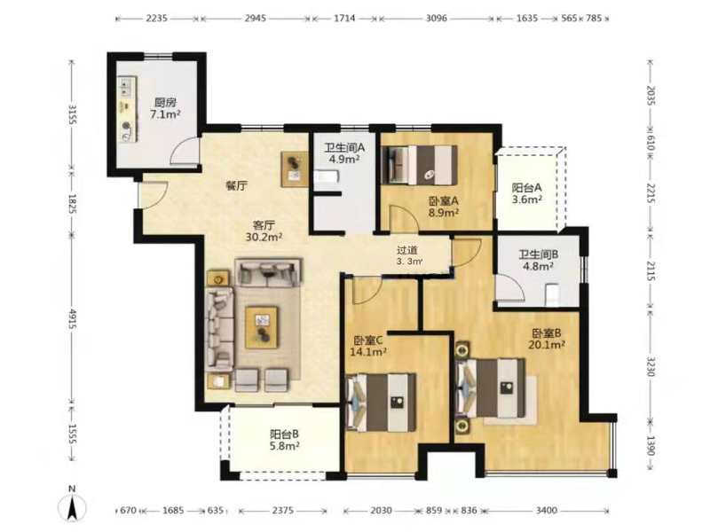 3室2厅| 99.84平米