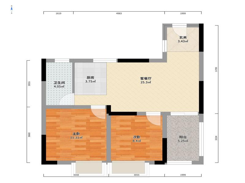 2室1厅| 61.79平米