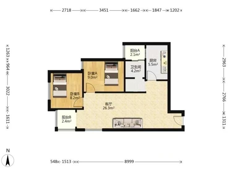 2室2厅| 85.00平米