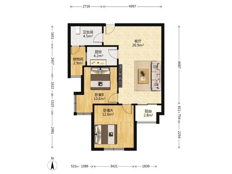 2室2厅| 85.12平米 -