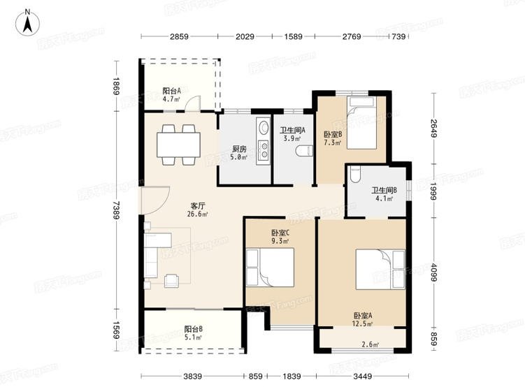 3室2厅| 89平米