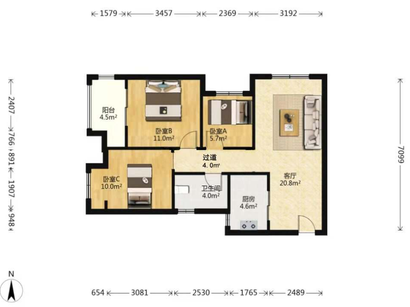 3室2厅| 99平米