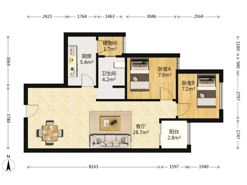 2室2厅| 64平米 -