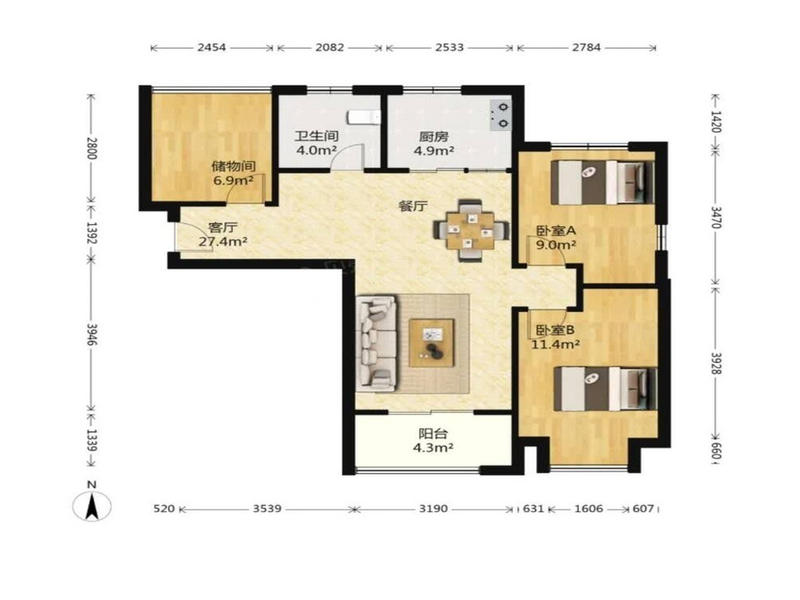 2室2厅| 86平米 -