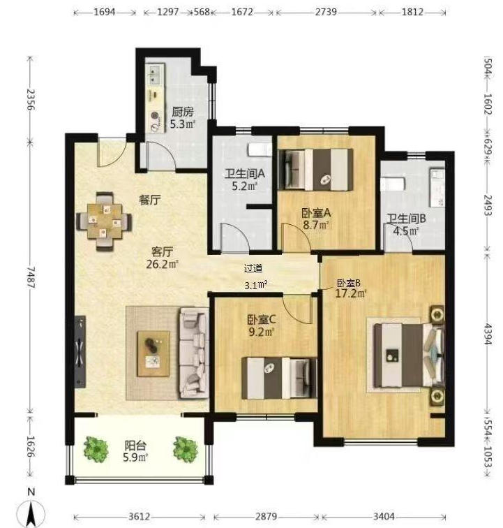 3室2厅| 89平米