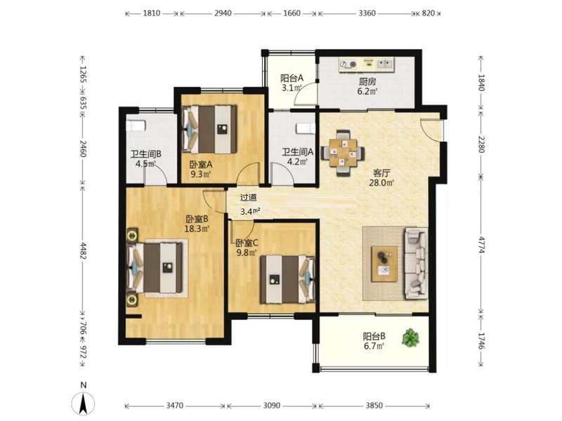 3室2厅| 89平米