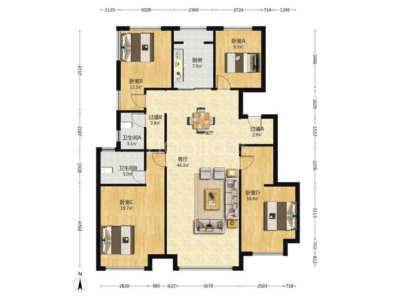 4室2厅| 144平米 -