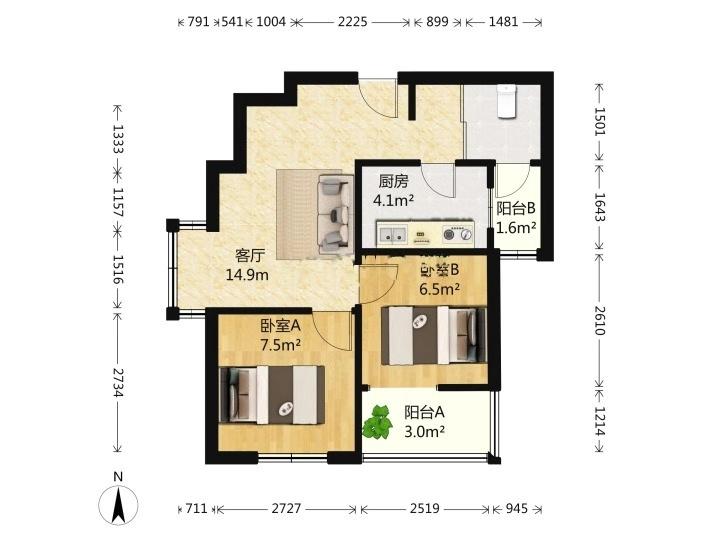 2室2厅| 83平米