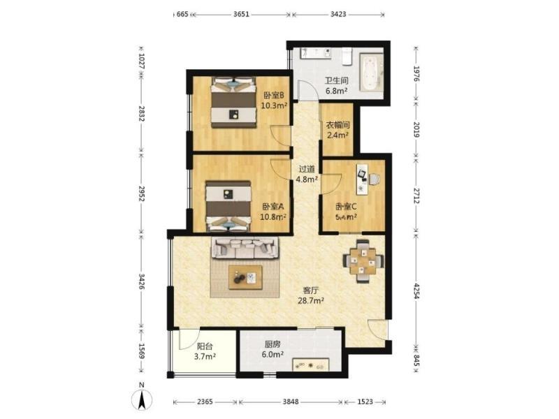 3室2厅| 108平米 -