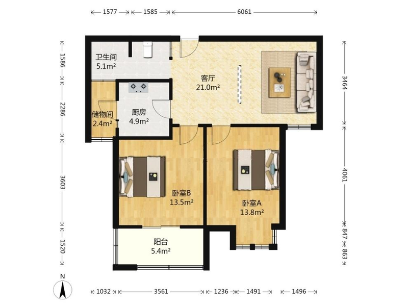 2室1厅| 57平米 -