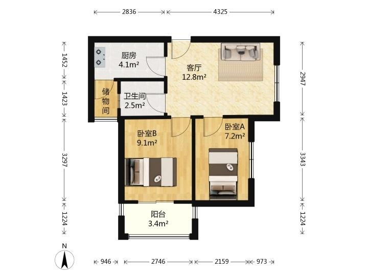 2室1厅| 56平米 -