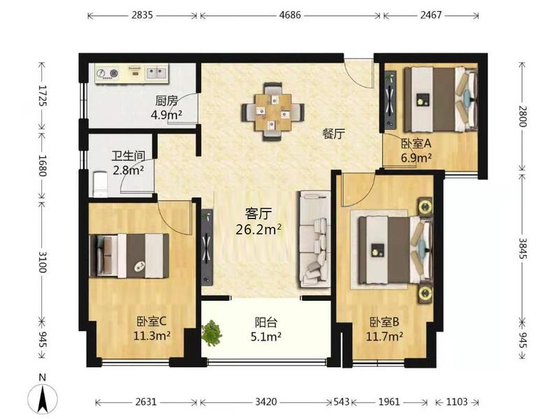 3室2厅| 113平米 -