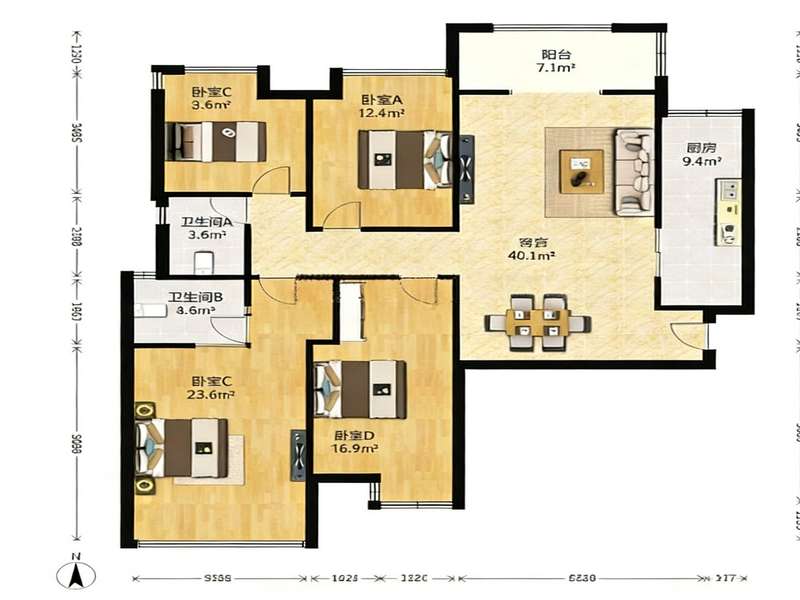 4室2厅| 136平米 -