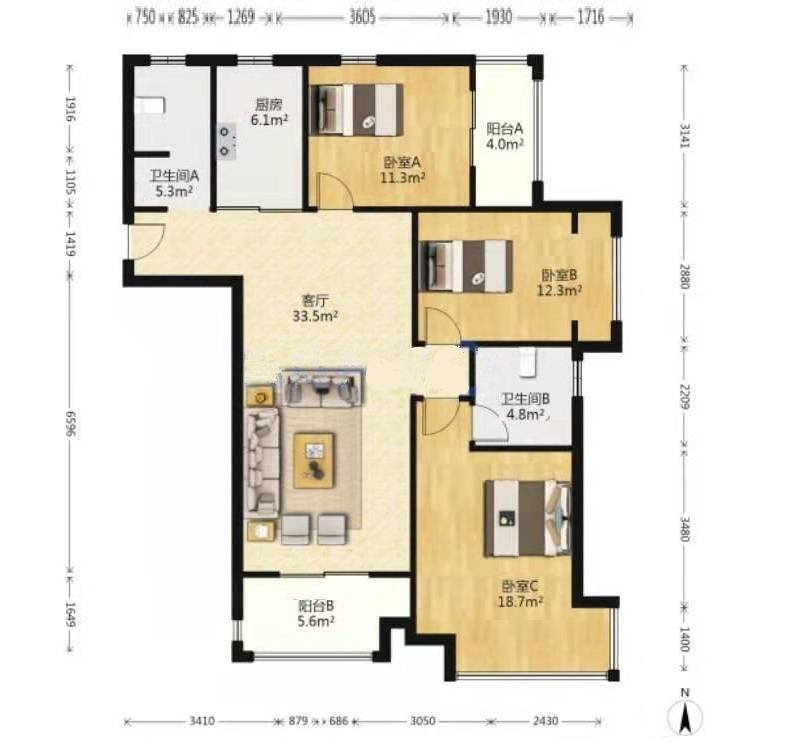 3室2厅| 99平米