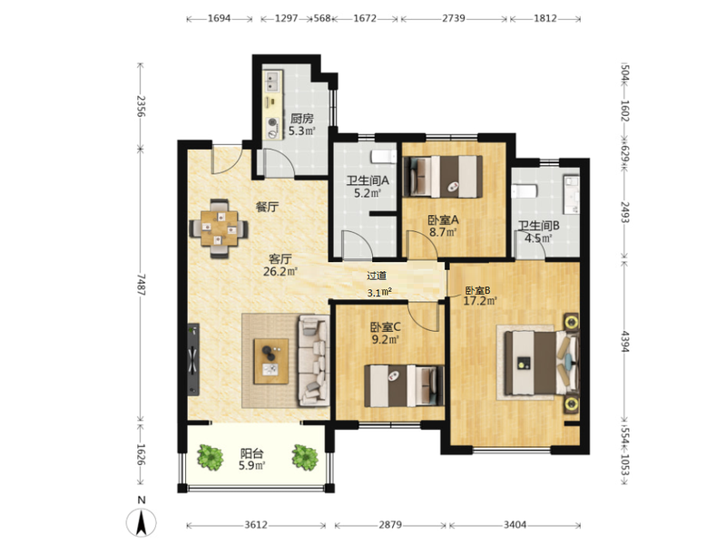 3室2厅