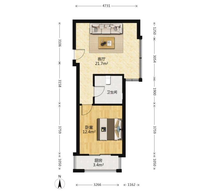 1室1厅| 50平米